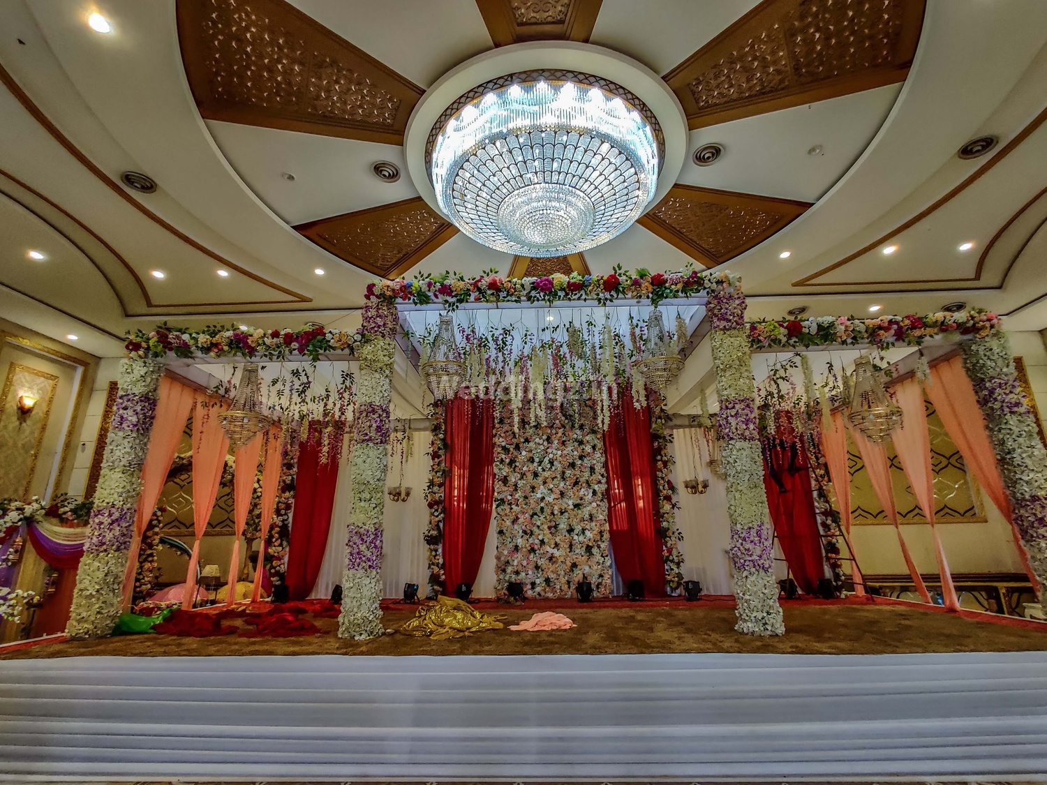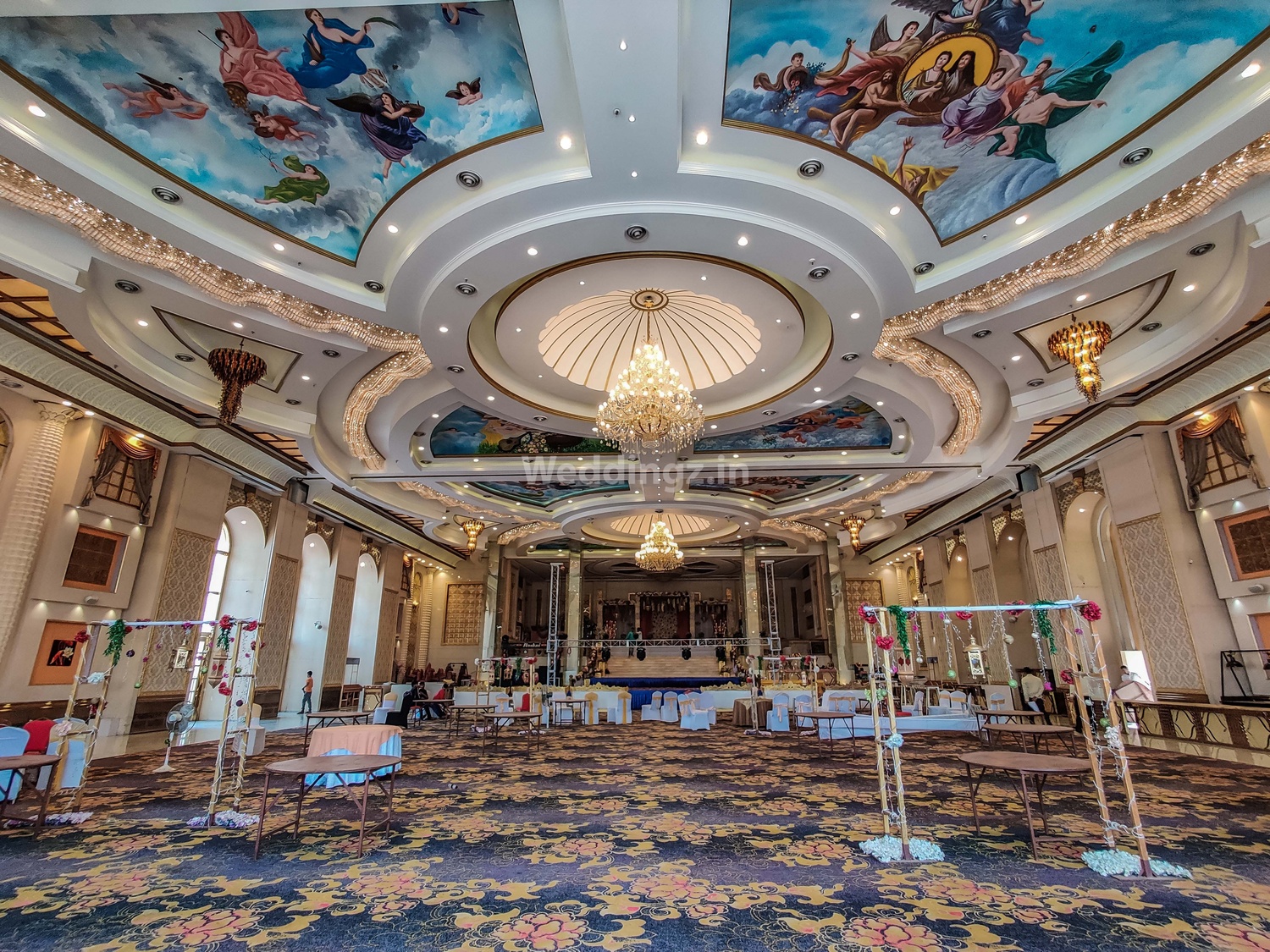 Vegetarian and Non Vegetarian food is served at this venue. Features of this wedding venues are : Food provided by the venue , Non-Veg allowed at the venue , Alcohol allowed at the venue , Outside alcohol allowed at the venue , Halls are air Conditioned , Ample parking , Baarat allowed , Hawan allowed , Overnight wedding allowed , Decor provided by the venue , Packages starts at Rs 2375 per plate for vegetarian menu and at Rs 2675 for non veg menu.